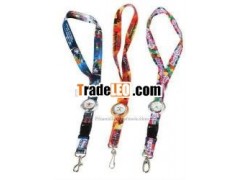 Digitalsublimated lanyard in 4 color process with round watch printed 1color on 2 sides. Select from our "pick 7" attachments at noadditional charge. Price includes indentical 4 color processsublimation print on 2 sides which can be specifically positionedor repeated for maximum exposure.